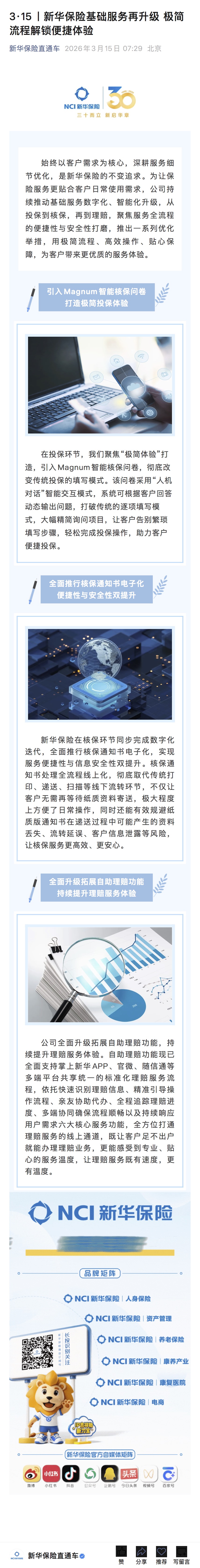 3·15|新華保險(xiǎn)基礎(chǔ)服務(wù)再升級(jí) 極簡(jiǎn)流程解鎖便捷體驗(yàn)